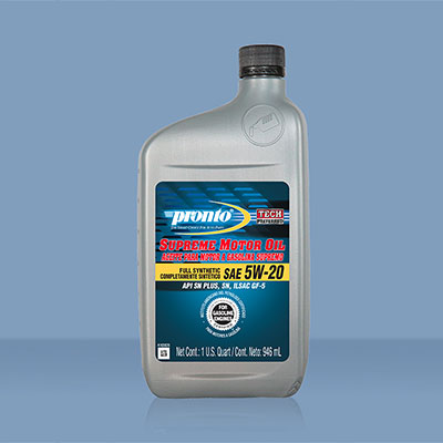 Detailed Description: Pronto 5W-20 full synthetic multi grade motor oil is formulated with a synthetic base oil which provide the highest level of engine protection while offering additional high temperature protection during even the most severe operating conditions. The 100% synthetic base oils that are used, provide exceptional resistance to high temperature oxidation thickening. The technologically advanced additives provide better protection against sludge and varnish formation, keeping your engine cleaner, longer. Pronto full synthetic motor oils provide excellent protection in challenging weather conditions and offers superior fuel economy.