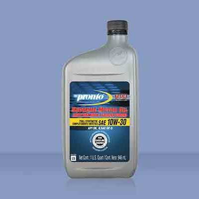 Detailed Description: Pronto 10W-30 full synthetic multi grade motor oil is formulated with a synthetic base oil which provide the highest level of engine protection while offering additional high temperature protection during even the most severe operating conditions. The 100% synthetic base oils that are used, provide exceptional resistance to high temperature oxidation thickening. The technologically advanced additives provide better protection against sludge and varnish formation, keeping your engine cleaner, longer. Pronto full synthetic motor oils provide excellent protection in challenging weather conditions and offers superior fuel economy.