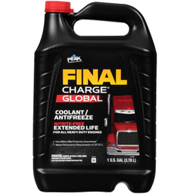 Detailed Description: The FINAL CHARGEĀ® Global Extended Life Coolant program provides total cooling system protection for all diesel, gasoline, on-road and off-road vehicles. It is the heavy-duty cooling system solution that can extend service intervals and reduce service and maintenance costs.