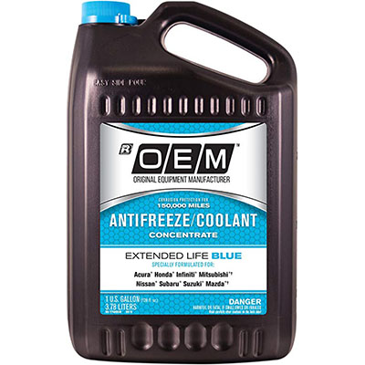 Detailed Description: OEM Extended Life BLUE Antifreeze/Coolant meets or exceeds performance requirements ASTM D3306 and JIS K2234. This long service life product is based on a proprietary extended life corrosion inhibitor technology. This ethylene glycol based product is free of silicates, borates, nitrites and amines. It protects coolant system metals against rust and corrosion and provides excellent high temperature aluminum protection. It is fully compatible with other similarly formulated extended life coolants and is recommended for use in Acura, Honda, Subaru and newer model foreign cars and light duty vehicles. *When added as an initial fill and properly maintained in accordance with engine manufacturer?s maintenance recommendations this coolant provides up to 250,000 km or 5 years service life protection in automotive applications. For best results, do not mix with conventional high pH, borate or silicate based antifreeze/coolant.
